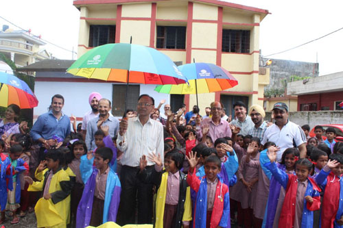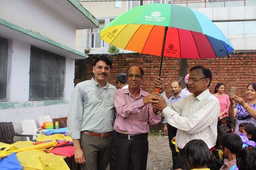Rotary EClub Doon 3080 Distributes Raincoats & Umbrellas to School Children & Teachers at Rajkiye Govt.School Chander Road.Dehradun